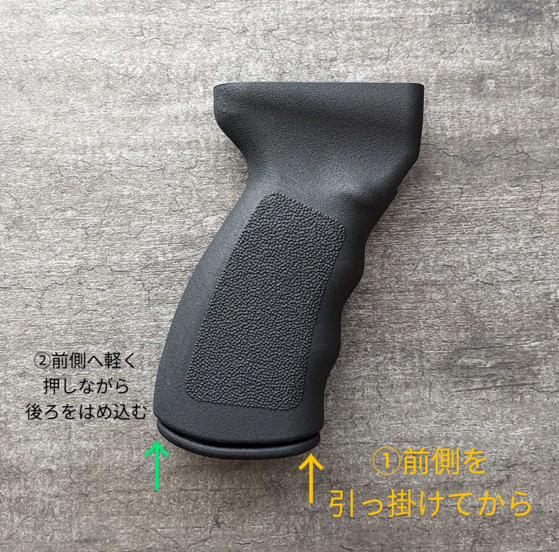 4. グリップ蓋の後ろ側の突起をグリップ本体にはめ込みます。